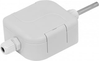 Durable industrial temperature sensor, –30°C to +70°C (–22°F to +160°F), IP65, wall mount. A Pt100 platinum temperature probe is in the tip of the protruding rod.